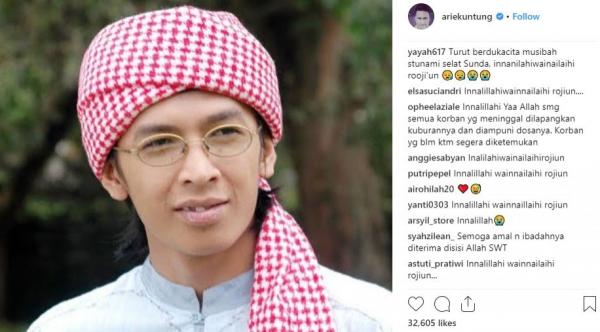Arie Untung juga mendoakan korban meninggal lainnya akibat tsunami Selat Sunda.