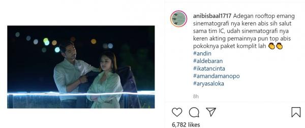 “Adegan rooftop emang sinematografi nya keren abis sih salut sama tim IC, udah sinematografi nya keren akting pemainnya pun top abis pokoknya paket komplit lah,” tulis akun tersebut seperti dikutip dari keterangan fotonya, Minggu (24/1/2021).