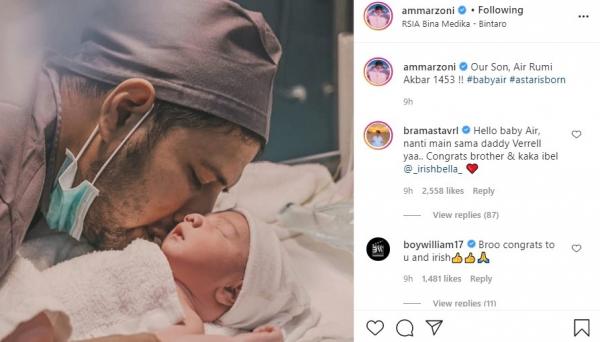 Tidak hanya Ammar Zoni, Irish Bella juga menggunggah foto beserta caption nama lengkap putra semata wayangnya yang lahir di Rumah Sakit Ibu dan Anak (RSIA) Bina Medika, Bintaro.