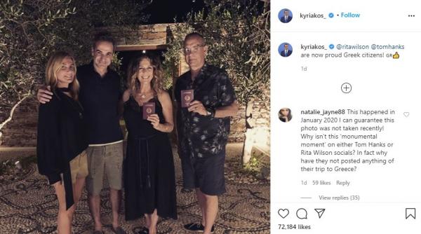 Hal itu diketahui dari unggahan akun Instagram Perdana Menteri Kyriakos Mitsotakis, Minggu (26/7/2020). Mitsotakis dan istrinya, Mareva Grabowski, baru-baru ini berpose bersama pasangan Hollywood yang memamerkan paspor mereka, seperti dikutip dari LA Times, Selasa (28/7/2020).
