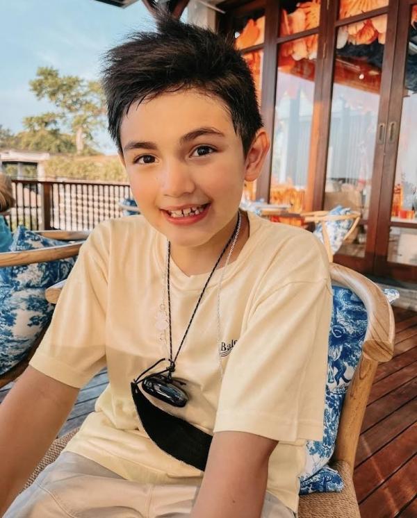 Anak artis yang gantengnya sudah terlihat sejak dini di urutan terakhir, ada Raphael Moeis. Bocah ini tampaknya kelak akan mewarisi wajah tampan sang ayah, Harvey Moeis dan juga paras menawan ibunya, Sandra Dewi. Sejak kecil saja, Raphael sudah memancarkan kesan 'cool' sekaligus menggemaskan.