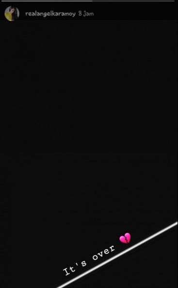 Terlebih postingan ini diberi emote hati terbelah. Hal ini membuat semua orang berasumsi bahwa jalinan cinta Angel tengah kandas.
