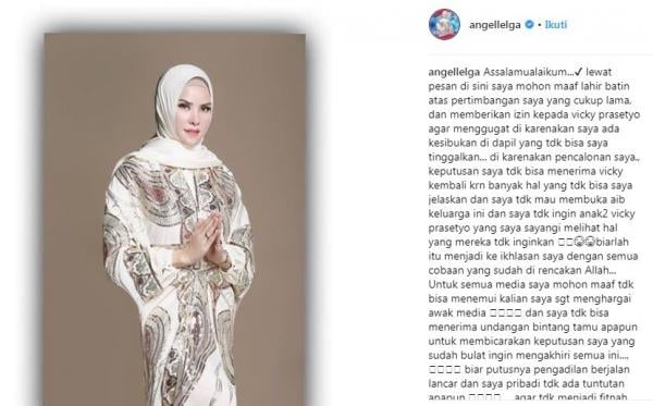Setelah Vicky buka suara soal rumah tangganya, kali ini giliran Angel Lelga. Melalui unggahan foto di akun Instagram miliknya, dia memberikan klarifikasi lewat caption menanggapi masalah yang sedang terjadi.
