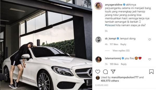 JAKARTA, iNews.id - Rasa gembira tengah menyelimuti Anya Geraldine. Selebgram cantik tersebut baru saja membeli barang keinginannya, buah dari kerja keras selama ini. Adalah sebuah mobil Mercedes-Benz atau Mercy.