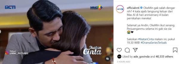 Berbeda dari ucapan cintanya beberapa episode lalu, ketika Andin hampir tak sadarkan diri usai menenggak racun. Hal tersebut diketahui dari video teaser yang diunggah di Instagram @officialrcti, Minggu (17/1/2021).