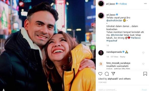Ia juga mendoakan agar almarhum Ashraf ditempatkan di tempat terindah di sisi Tuhan. “Istirahat dalam damai .. dalam keabadian. Tuhan memberi tempat terindah utk mu,” tulis pelantun ‘Hampa’ tersebut di Instagramnya.