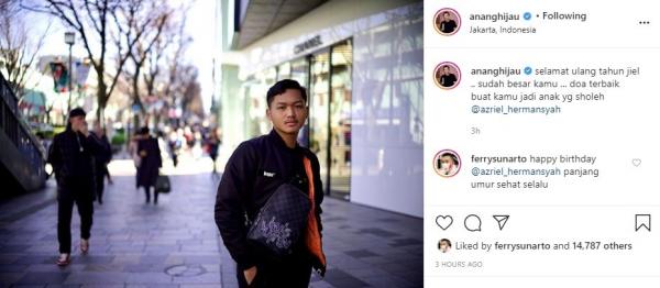 Ucapan selamat dan doa pun diberikan oleh Anang Hermansyah kepada Azriel yang lahir pada 27 Juni 2000 di akun Instagram.