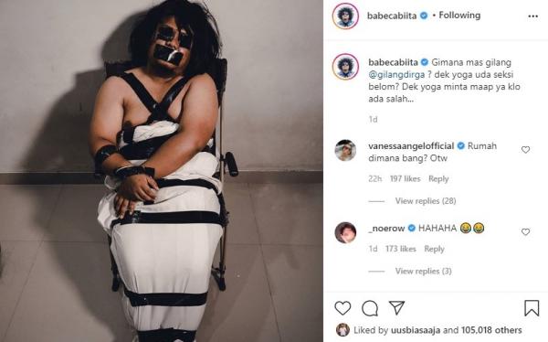 Namun, unggahan Babe ternyata banyak menuai komentar pedas. Salah satunya adalah influencer Awkarin alias Karin Novilda. Dia menilai candaan aktor The Underdogs itu tak lucu karena menyinggung para korban Gilang Bungkus.