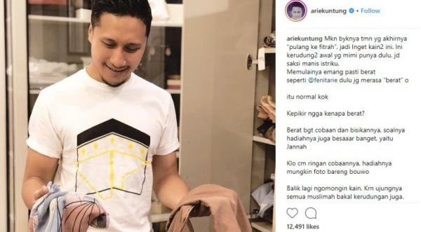 "Makin banyaknya teman yang akhirnya “pulang ke fitrah”, jadi Inget kain-kain ini. Ini kerudung-kerudung awal yang mimi punya dulu, jadi saksi manis istriku. Memulainya emang pasti berat, seperti @fenitarie dulu jg merasa “berat”. Itu normal kok," kata Arie Untung, dikutip dari keterangan foto di Instagram miliknya, Kamis (12/7/2018).