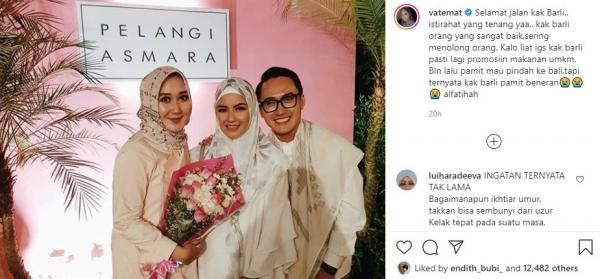 Dia juga mengungkapkan bahwa Barli Asmara sempat pamit karena ingin tinggal di Bali. “Bln lalu pamit mau pindah ke bali,tapi ternyata kak barli pamit beneran. Alfatihah,” tulisnya.