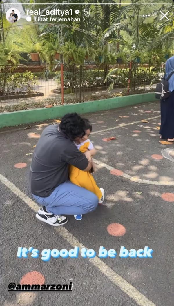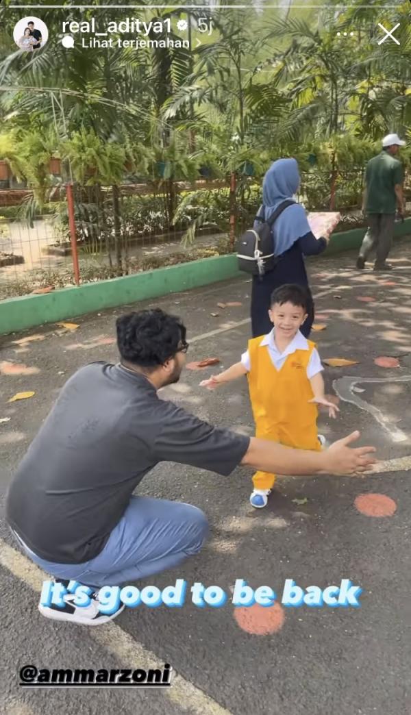 Lewat Instagram Story Aditya, terlihat Ammar Zoni menjemput Air Rumi di sekolah. "It's good to be back," kata Aditya di Instagram pribadinya, Senin (9/10/2023).
