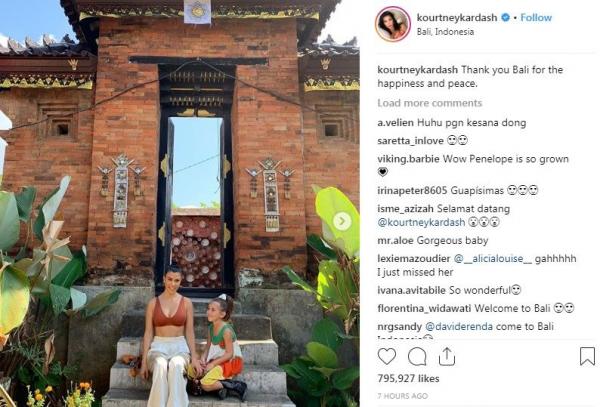 Keindahan serta keeksotisan Bali membuat Kourtney terkesan. Dia mempostingkan kata manis untuk menggambarkan Bali selama dia berada di sana.