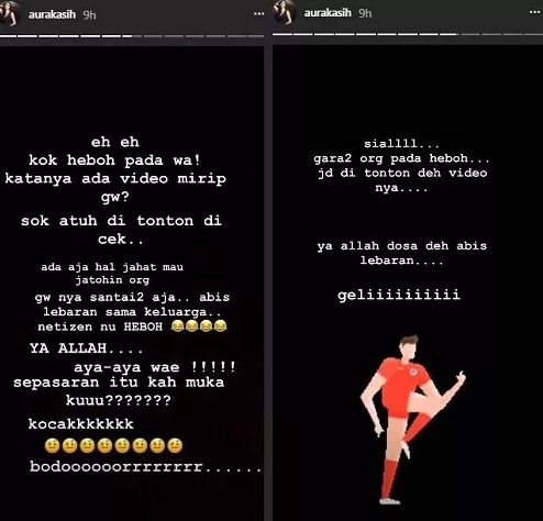 Di tengah kabar simpang siur mengenai video itu, wanita 31 tahun ini telah memberikan tanggapannya. Dalam keterangan tulisan yang diunggah pada Instagram Story miliknya, Aura tampak santai dengan pemberitaan yang kini tengah menimpanya.