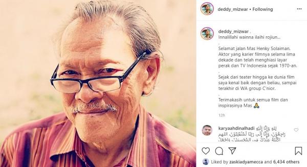 “Innalillahi wainna ilaihi rojiun. Selamat jalan Mas Henky Solaiman. Aktor yang karier filmnya selama lima dekade dan telah menghiasi layar perak dan TV Indonesia sejak 1970-an,” tulisnya, dikutip iNews.id pada Sabtu (16/5/2020).