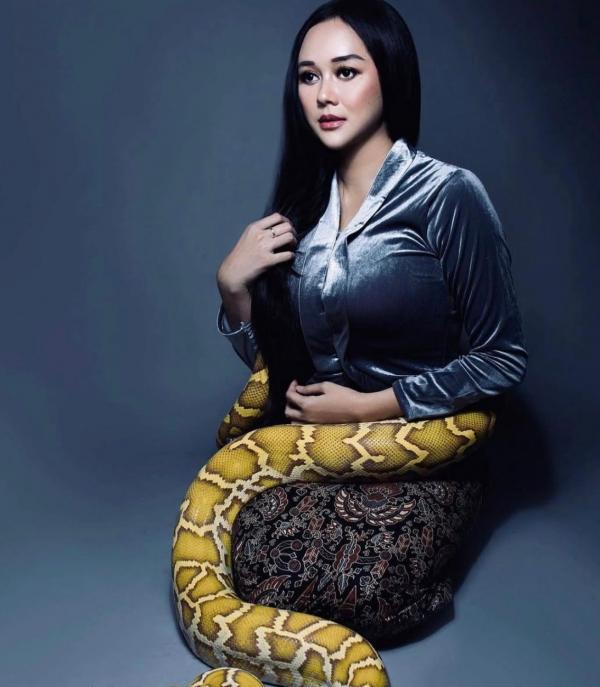 Bikin Merinding, Aura Kasih Pamer Pose Ekstrem Bareng Ular Besar