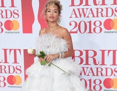 Rita Ora mencuri perhatian di karpet merah Brit Awards 2018 dengan gaun strapless berpotongan ballgown warna putih. Gaun yang penuh dengan aksen bulu-bulu tersebut, diketahui merupakan rancangan desainer asal Australia, Ralph and Russo. Rambutnya ditata super-curly, sementara riasan wajahnya ditonjolkan pada lipstik pink bernuansa glossy.
