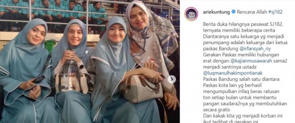 “@ratihwindania Sekeluarga yg berada dalam pesawat sempat hadir di sebuah acara bersama @kajianmusawarah dan ternyata difoto tersebut beliau sempat mendoakan kami,” tulisnya.