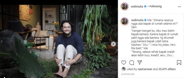“Foto terakhir @dwisasono di tgl 26 Mei lalu, yang saya ambil pakai kamera lama yg dimaksud Den Bagus,” tulis Widi.