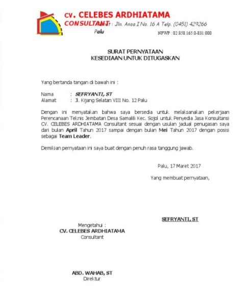 2. Surat Pernyataan Kesediaan untuk Ditugaskan