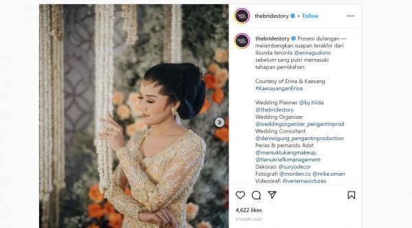 Kebaya yang digunakan Erina rancangan Intan Avantie, aksesori by Tulola, dan sepatunya dari Regis Bridal Shoes. Untuk penataan rambut, Erina mengandalkan Noe Hair and Makeup. So pretty!