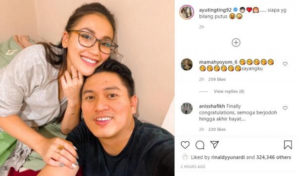 Melalui akun Instagram miliknya, Ayu mengunggah sebuah foto mesra antara dirinya dan Adit. Dalam keterangannya, Ayu juga mempertanyakan pihak-pihak yang menyebut dirinya telah tak lagi menjalin hubungan asmara dengan sang kekasih.