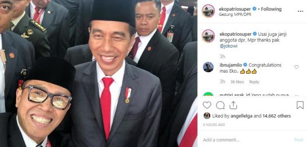 Usai dilantik dan resmi kembali lagi ke Senayan sebagai anggota DPR, Eko mengunggah foto bersama Presiden RI Joko Widodo (Jokowi) di media sosial Instagramnya. Dia juga mengucapkan rasa terima kasihnya pada Presiden terpilih di periode 2019-2024 tersebut.