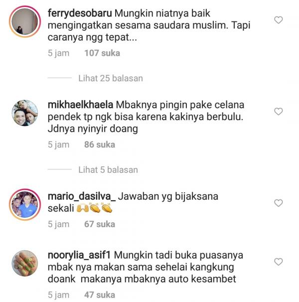Spontan postingan artis berusia 46 tahun ini mendapat reaksi beragam dari netizen. Rata-rata mereka mendukung jawaban mantan istri Teuku Rafly Pasya dan Mike Lewis tersebut.