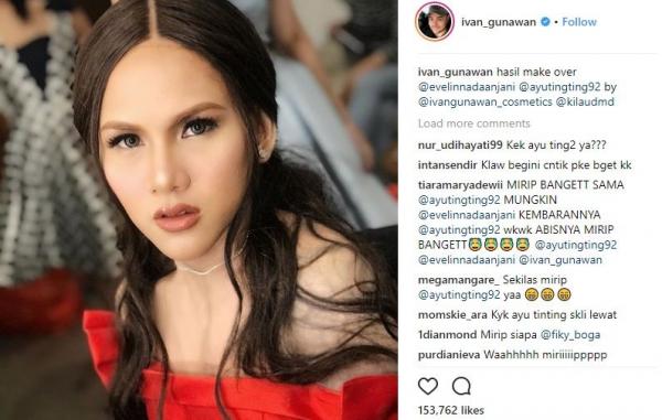 "Hasil make over @evelinnadaanjani @ayutingting92 by @ivangunawan_cosmetics," kata Igun dikutip dari keterangan foto di Instagram-nya, Rabu (30/5/2018).