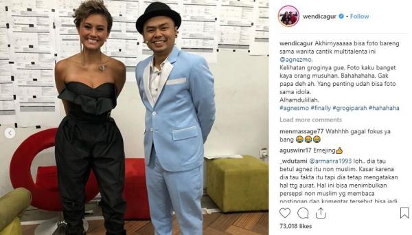 "Akhirnyaaaaa bisa foto bareng sama wanita cantik multitalenta ini @agnezmo. Kelihatan groginya gue," tulis Wendy, seperti dikutip dari Instagram miliknya, Kamis (11/10/2018).