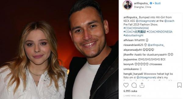 "Bumped into Hit-Girl from KICK ASS @chloegmoretz at the @coach Pre Fall 2019 Fashion Show. #aboutlastnight," tulisnya seperti dikutip dari akun Instagram yang diunggah Minggu (9/12/2018).