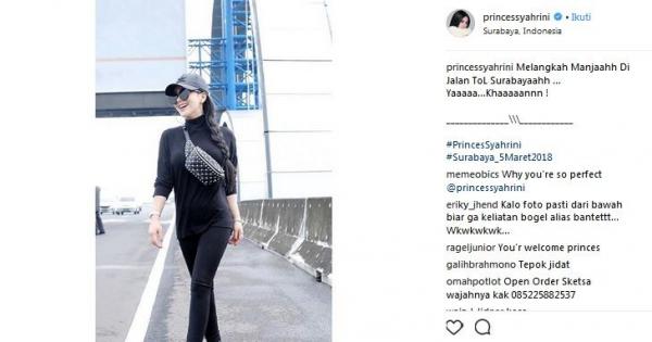“Melangkah Manjaahh Di Jalan ToL Surabayaahh. Yaaaaa...Khaaaaannn! #PrincesSyahrini #Surabaya_5Maret2018,” tulis Syahrini.