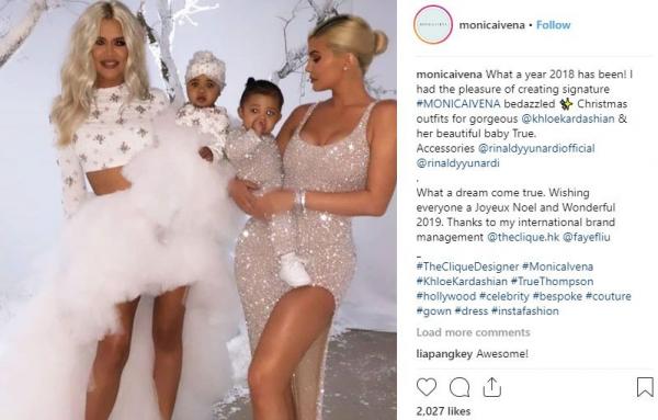 "Kemarin saya ada sketch beberapa dan kebetulan yang dipilih oleh Khloe yang ini. Dan memang karena ini di bulan Natal, saya membuatnya lebih ke suasana Natal. Saya padukan dengan ciri khas beadings saya yaitu stone," kata Monica Ivena saat dihubungi iNews.id, Rabu (26/12/2018).