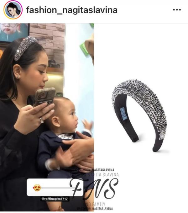 Momen Gigi mengenakan bandana tersebut diunggah akun Instagram, @fashion_nagitaslavina. “Nagita Slavina mengenakan ‘Stud Embellished Headband’ dari Prada,” tulis akun itu dikutip MNC Portal Indonesia, Senin (5/12/2022).