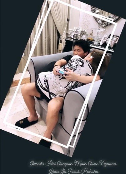 Pada video singkat itu, tampak Reino tengah bermain game, sedangkan Syahrini justru duduk di pangkuan suaminya tersebut sambil memeluk manja.