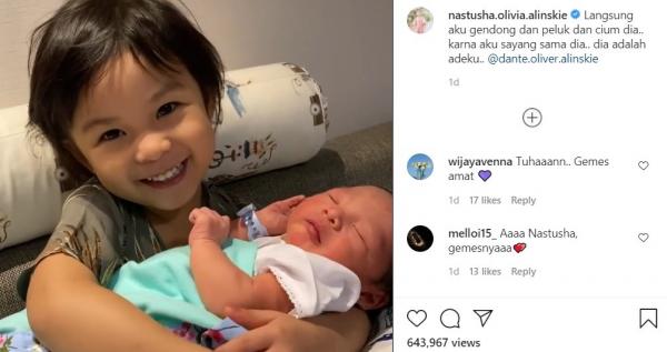 Kegemasan Nastusha pada sang adik pun menuai ribuan komentar netizen. Mereka meleleh atas sikap manis putri kecil Chelsea dan Glenn pada Dante yang baru beberapa hari lahir ke dunia.