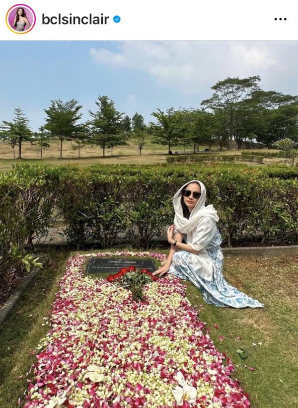 Momen tersebut dibagikan BCL di media sosial Instagramnya. Di postingan tersebut, tampak sang penyanyi sedang duduk di sisi makam.