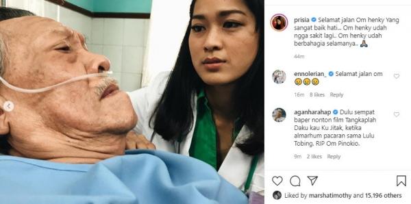 Di akun Instagram, Prisia mengunggah tiga foto ketika Henky Solaiman dirawat karena kanker usus. Unggahan Prisia langsung dibanjiri ucapan duka dari netizen dan rekan-rekan selebriti. Mereka juga mendoakan almarhum Hengky.