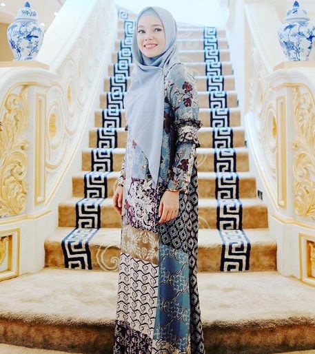 Agar tak tampil monoton, Anda bisa menggunakan gamis motif yang memiliki padu padan warna serasi. Seperti look Dewi Sandra yang memadankan gamis bermotif batik rancangan Ria Miranda dengan hijab polos berwarna netral yang dijulurkan hingga dada.