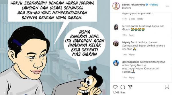 Kabar duka tersebut, langsung ramai mencuri perhatian masyarakat Indonesia. Unggahan terakhir putra pertama Jokowi, Gibran di media sosial Instagram pun ramai dibanjiri ucapan belasungkawa dari netizen.