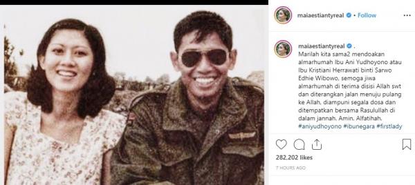 Lewat unggahan di akun Instagram pribadinya, Maia mengajak masyarakat untuk mendoakan mendiang Ani Yudhoyono.