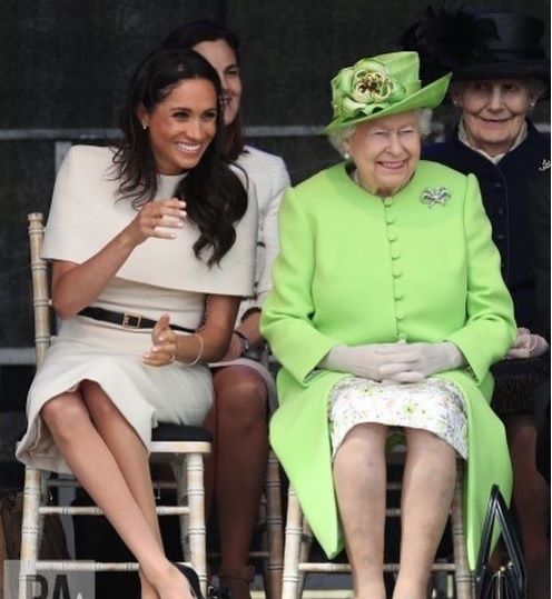 Penampilan Meghan saat solo trip perdana dengan Ratu Elizabeth. (Foto: Doc. Instagram)