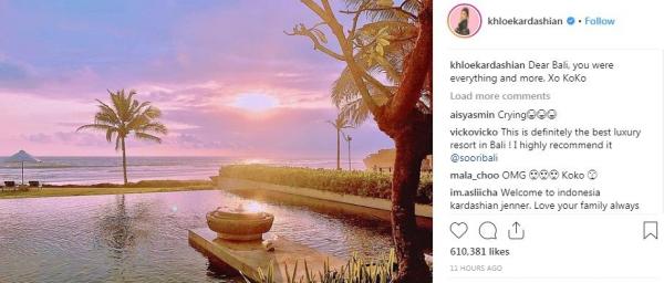 "Dear Bali, you were everything and more. Xo KoKo," tulis Khloe.