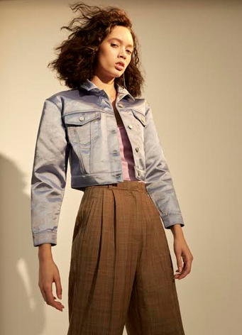 Jaket denim yang sering Anda kenakan mungkin berbeda dengan ide jaket denim berbahan katun dan polister dari Topshop ini. Padukan dengan dalaman satin, dan celana hits yang lagi in seperti dari Mijeong Park.