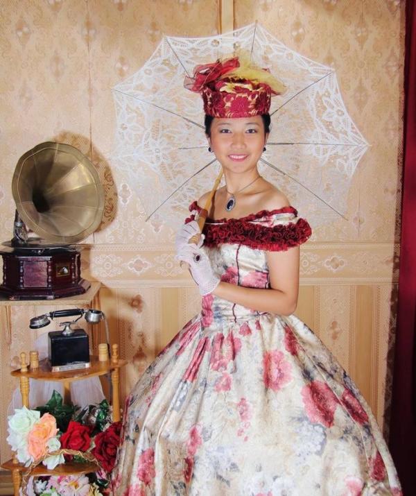 Wajah Irene kerap tampil berhadapan dengan papan catur. Tapi, bagaimana penampilannya tanpa papan catur? Seperti di foto ini, Irene tampak anggun bergaya ala bangsawan dengan gaun Eropa klasik bermotif bunga-bunga.