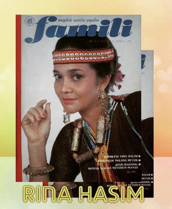 Ini adalah potret cantik Rina Hasyim saat jadi model sampul majalah Famili yang hits tahun 1981. Di foto itu dia memakai baju adat Makassar.