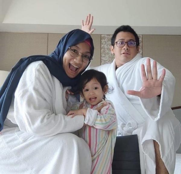 Jordy mengunggah potret keharmonisan keluarganya, terlihat pasangan ini kompak mengenakan kimono handuk berwarna putih sementara sang anak memakai kimono handuk dengan motif garis-garis dengan warna pelangi, kebahagiaan terpancar di wajah mereka.