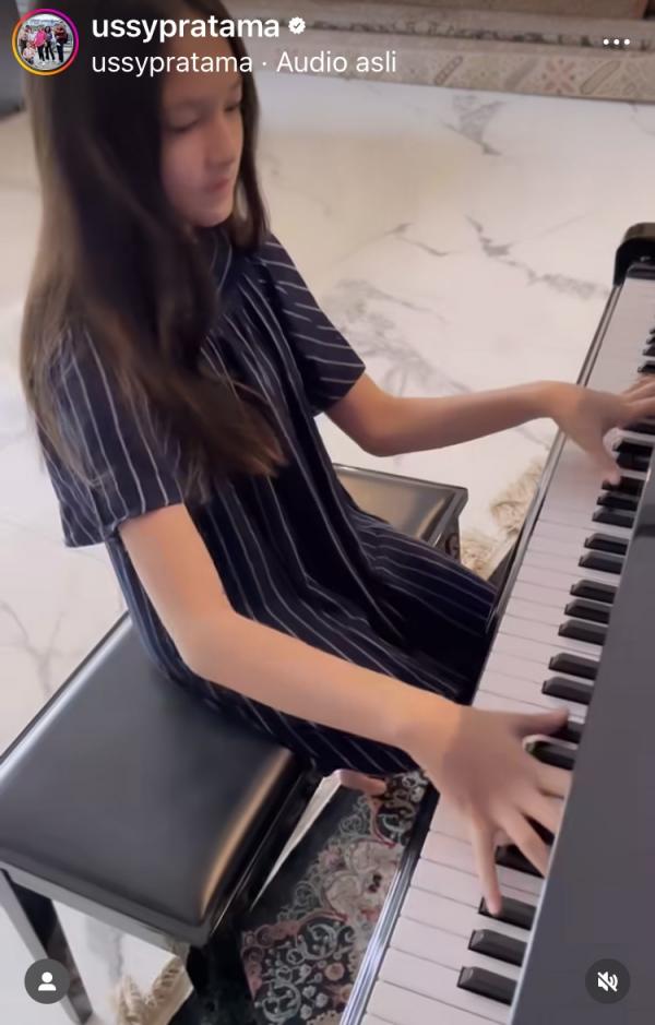 Ussy pun mengabadikan momen Eleanor memainkan piano dengan detail. Dirinya begitu bangga bisa menyaksikan putrinya turut memiliki darah bermusik seperti dirinya.