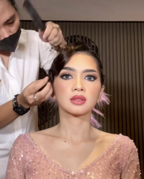 Potret ini adalah saat sesi makeup dan hairdo Angel Karamoy untuk perayaan ulang tahun ke-36.