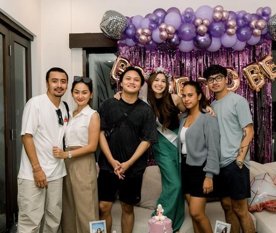 Sementara di bagian meja ada beberapa kue dan foto Mahalini. Acara bridal shower itu diikuti kakak Mahalini, Dion Raharja dan istrinya Nindy Pricilia. Ada juga Rizky Febian dan sahabat yang ikut memeriahkan.