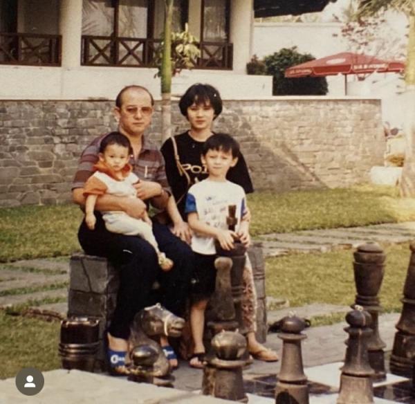 Potret lawas Mercy Lubis bersama keluarganya. Di foto ini Mercy memakai kaus hitam dan rambut pendek berponi. Tampak Inara Rusli masih sangat kecil duduk dipangkuan sang ayah.